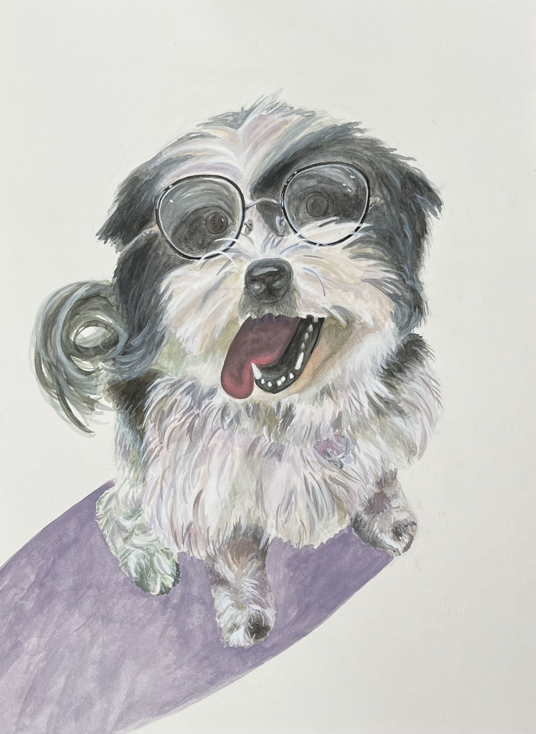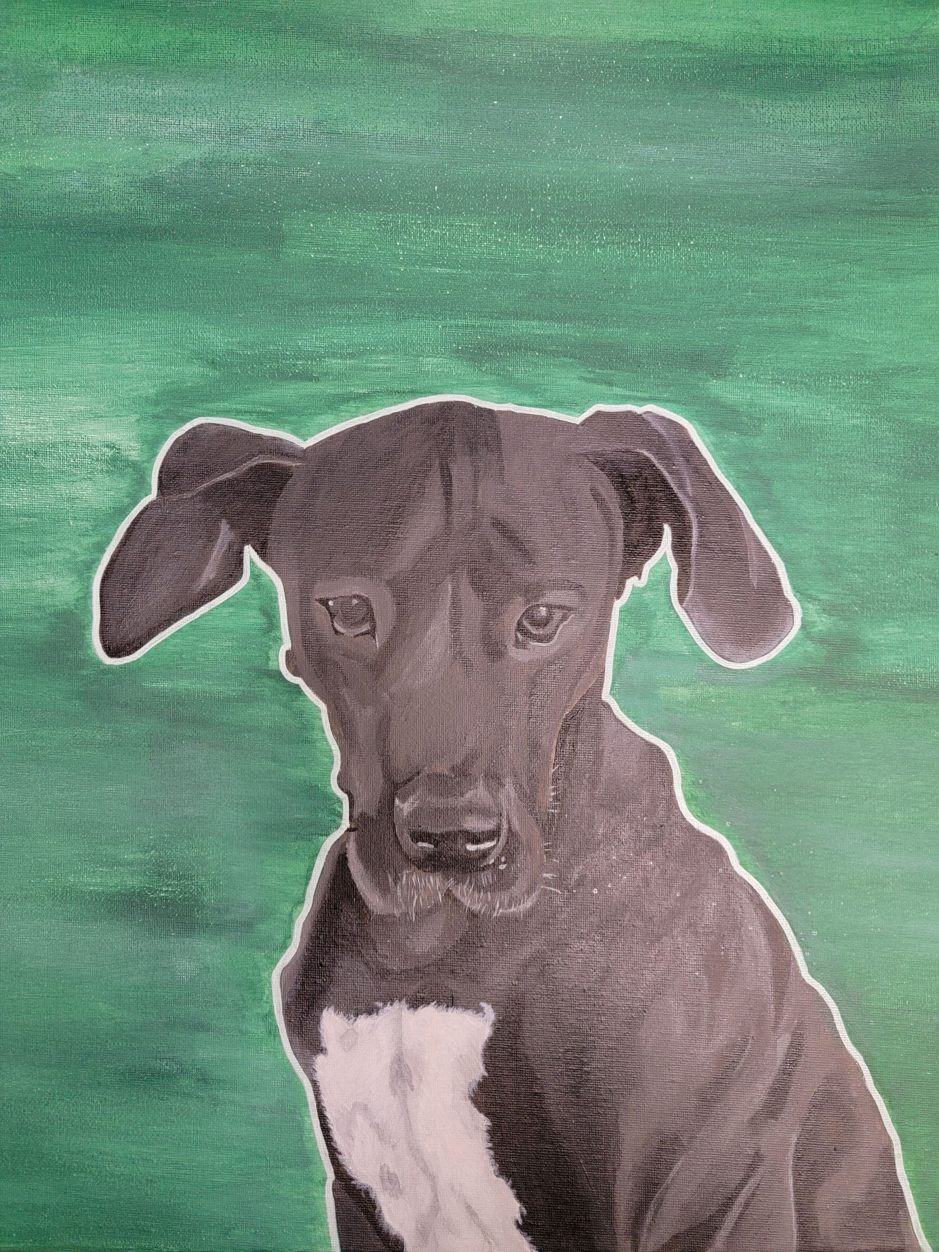 My favorite part of this piece would be the face, more specifically the nose. My least favorite would be the chest. My inspiration would be the amount of love I have for my dog. I would pay more attention to the detail of my dog’s body to portray that realistic texture on the portrait. I learned to pay close attention to even the smallest details of the face. For this piece, I sketched out the main shapes of my dog and then progressively would add more details. I then would mix a bunch of different colors together and blend it all together.