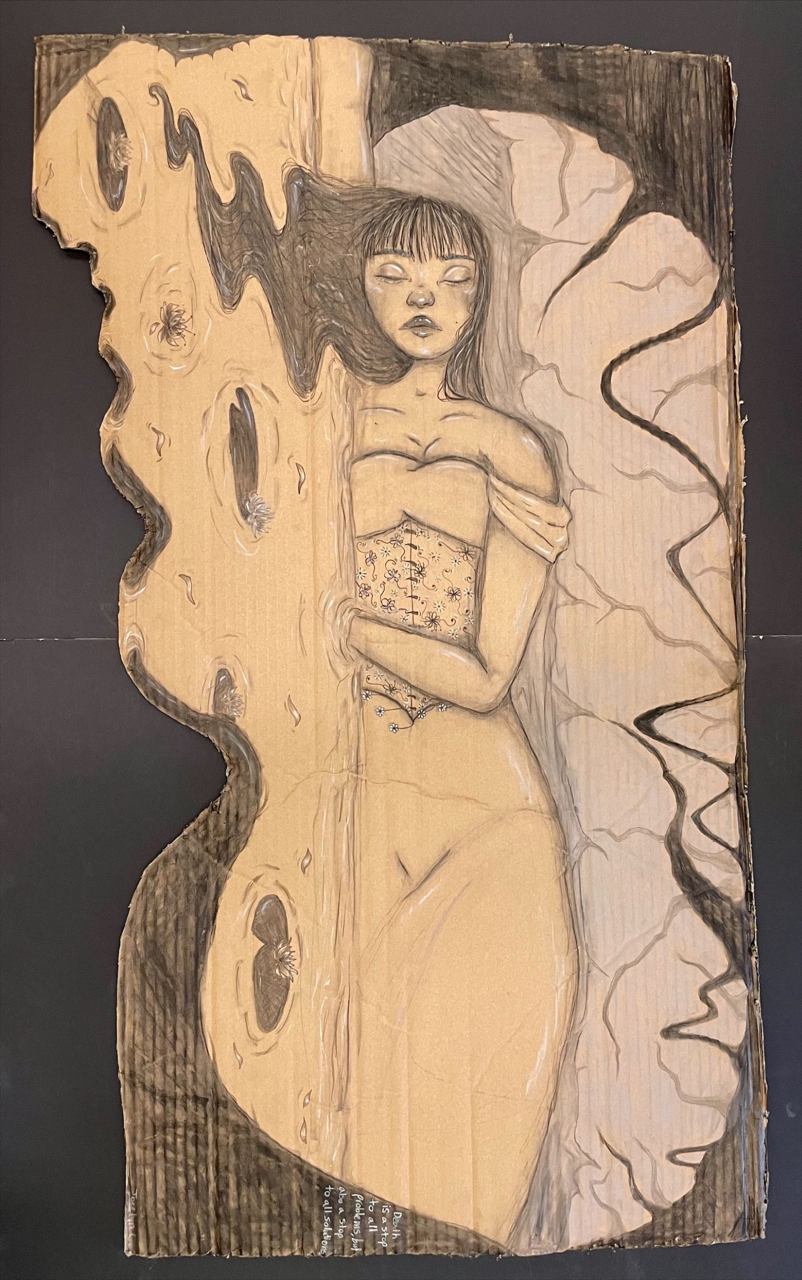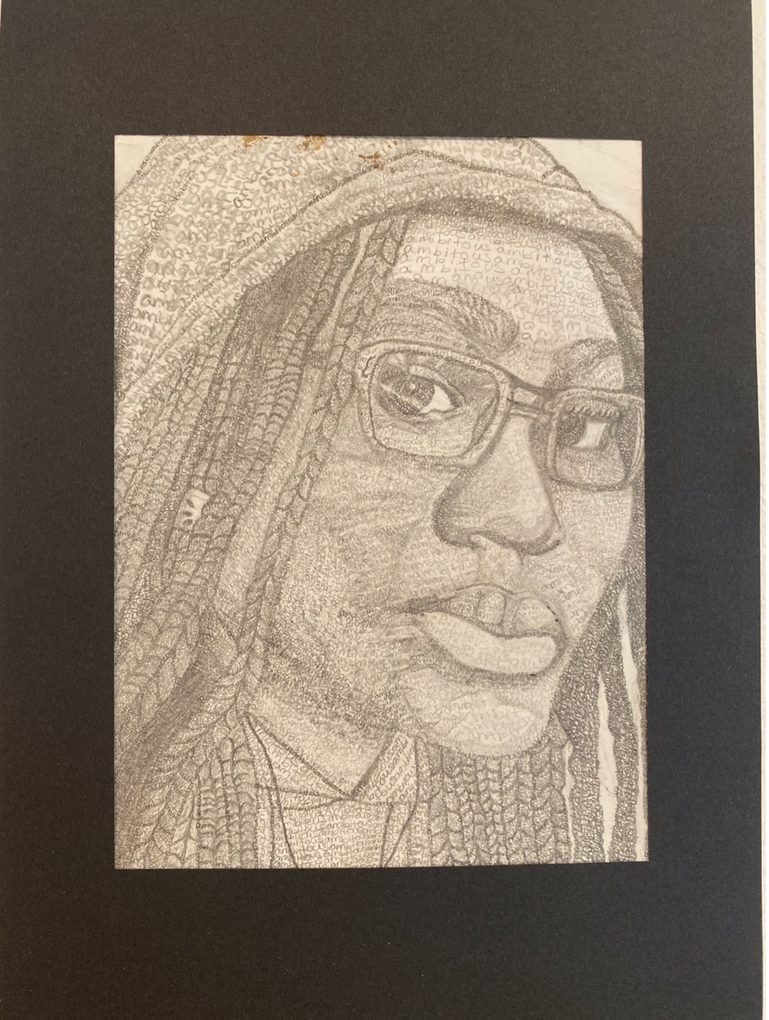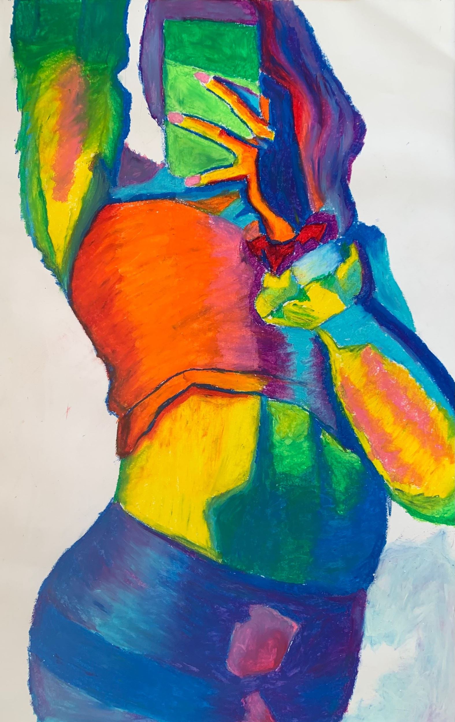 My favorite part is the hair and I don’t necessarily have a least favorite part for this piece. My inspiration behind this was the feeling of loneliness and sadness. I would try to do better on the shadows and the wrinkles on the clothing because I think it would add a lot more detail to pay attention too. I learned how to blend different chalks together to give highlights on certain areas like the hair in which the hair was also the most surprising to me. To make this artwork, I sketched out the main shapes and started adding more detail as I went on. I eventually progressed into the shading and shadows and created this piece.