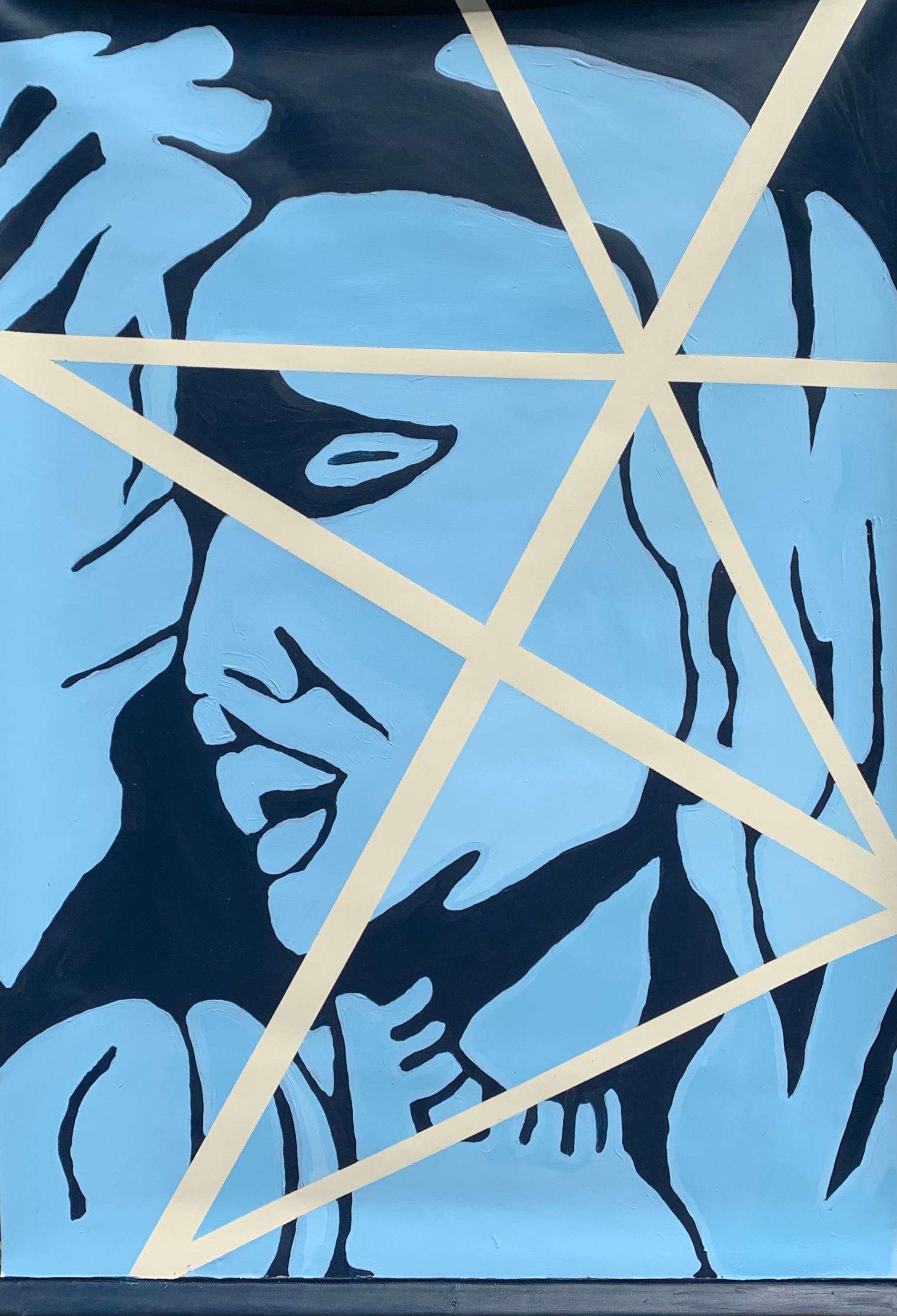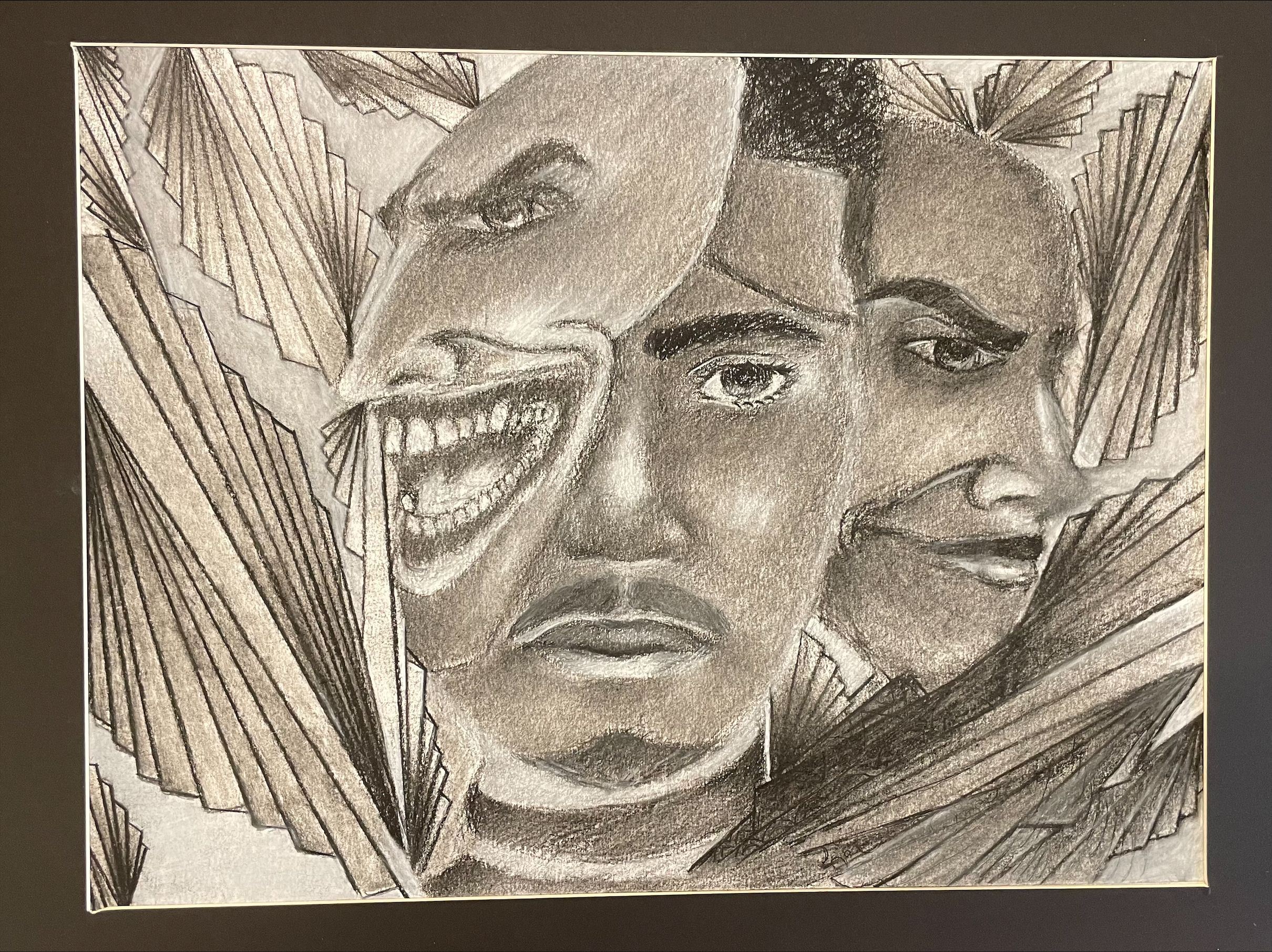 create a simple, impactful piece. I drew upon my experience in Medusa by creating depth with tones only and my experience with line and shape in Life & Death. However, in this piece, I utilized line to be symbolic on its own, without the context of an object, to demonstrate the pain felt by the figure in the composition as referenced by the title, Shattered.