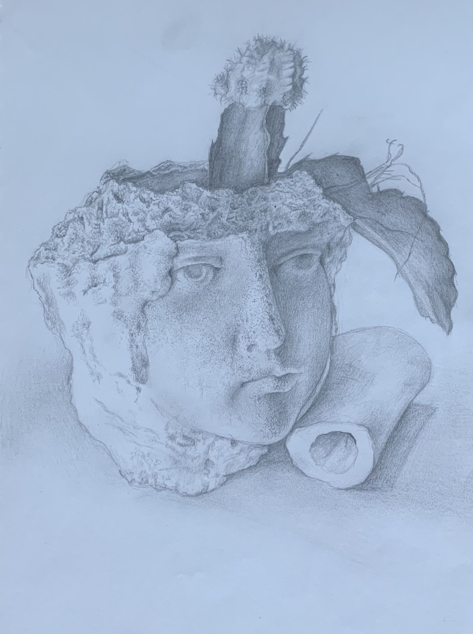 I created this piece because I wanted to develop my observational skills as I worked on a still life piece, while also being able to experiment with composition and different values. By solely working with black charcoal, I was able to figure out how to use different shades of black and grey in order to create depth, and show reflection by keeping spaces white. .