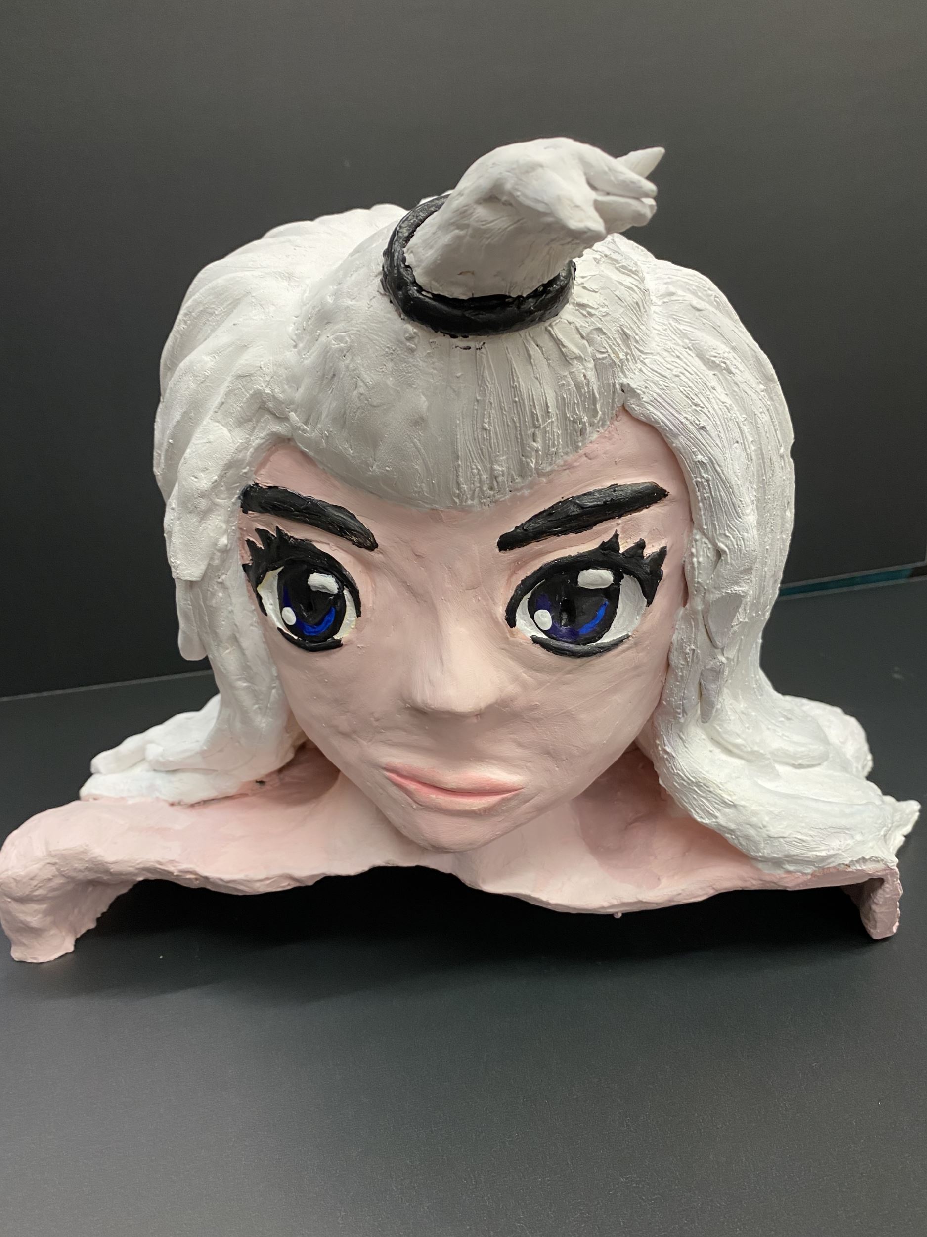 My favorite part of creating this piece was her hair. My least favorite part was sculpting the mouth to blend it perfectly.